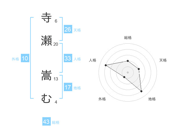 寺瀬 嵩むさんの総格は43画の2点!
