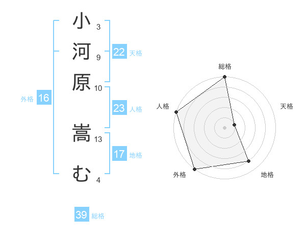 小河原 嵩むさんを姓名の画数から五運を鑑定