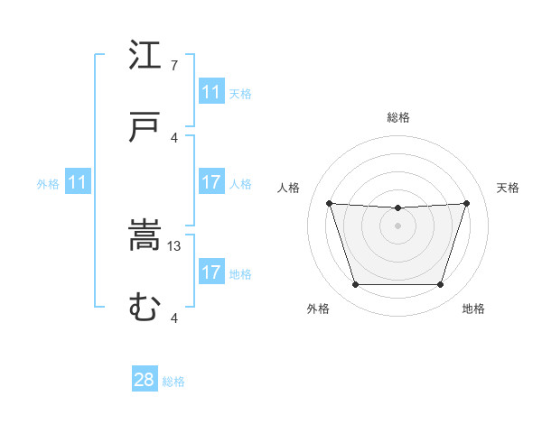 江戸 嵩むさんの外格は11画の4点!