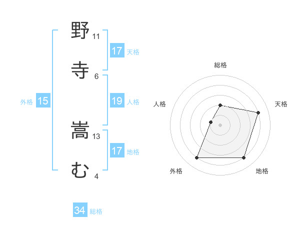 野寺 嵩むさんの天格は17画の4点!