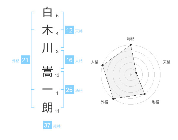 白木川 嵩一朗さんの総格は37画の5点!