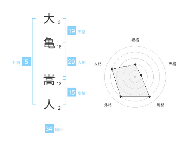 大亀 嵩人さんの総格は34画の2点!