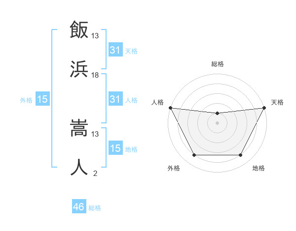 飯浜 嵩人さんの外格は15画の4点