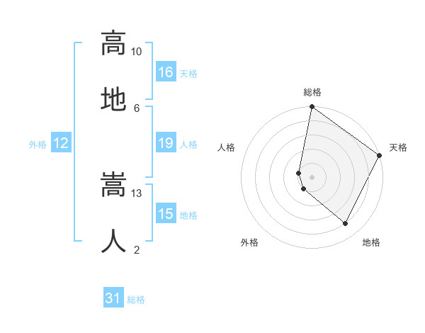 高地 嵩人さんの天格は16画の5点!