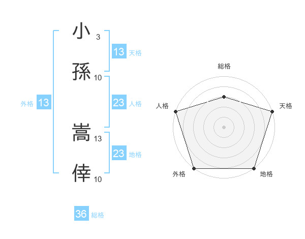 小孫 嵩倖さんの天格は13画の5点!