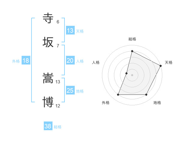 寺坂 嵩博さんの総格は38画の4点!