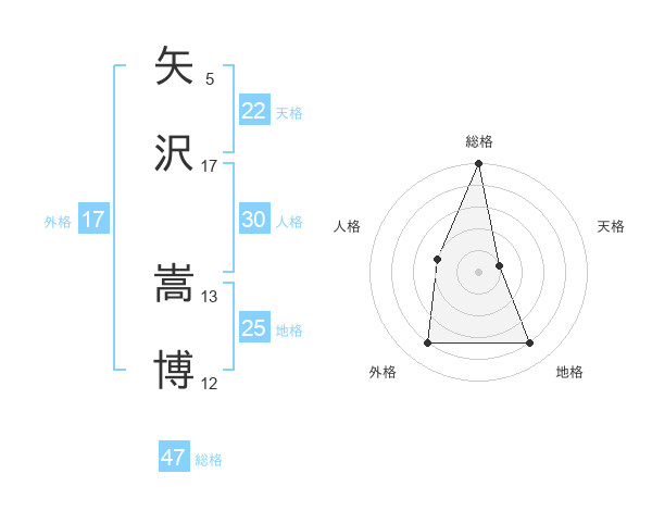矢沢 嵩博さんを姓名の画数から五運を鑑定