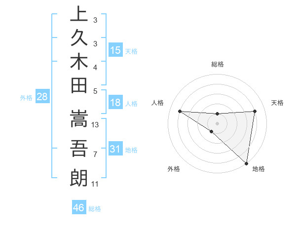 上久木田 嵩吾朗さんの地格は31画の5点!