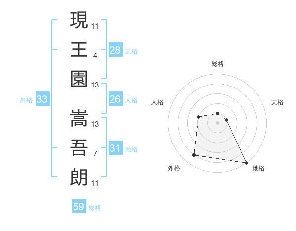 現王園 嵩吾朗さんを姓名の画数から五運を鑑定