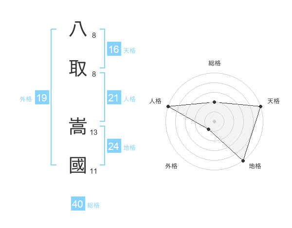 八取 嵩國さんを姓名の画数から五運を鑑定