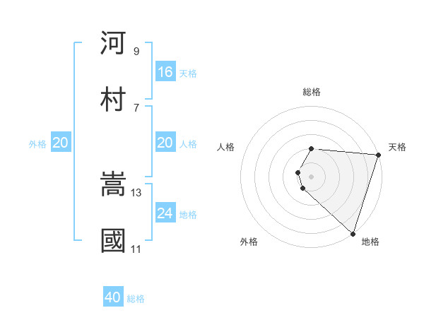 河村 嵩國さんの総格は40画の2点!