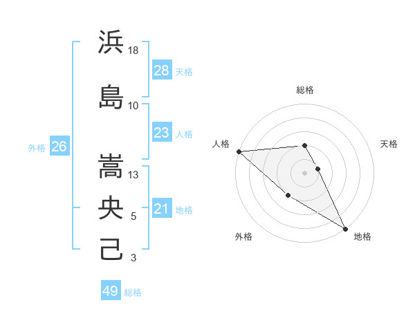 浜島 嵩央己さんの総格は49画の2点