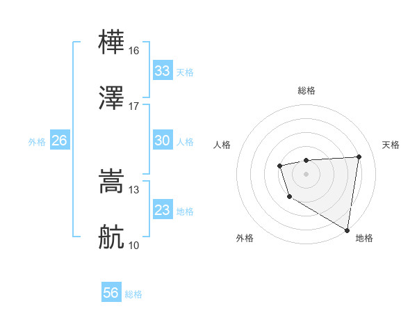 樺澤 嵩航さんの天格は33画の4点!