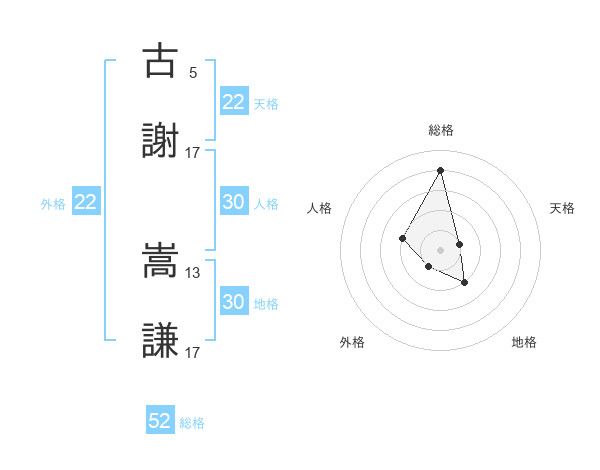 古謝 嵩謙さんを姓名の画数から五運を鑑定