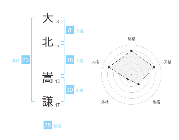 大北 嵩謙さんの総格は38画の4点!