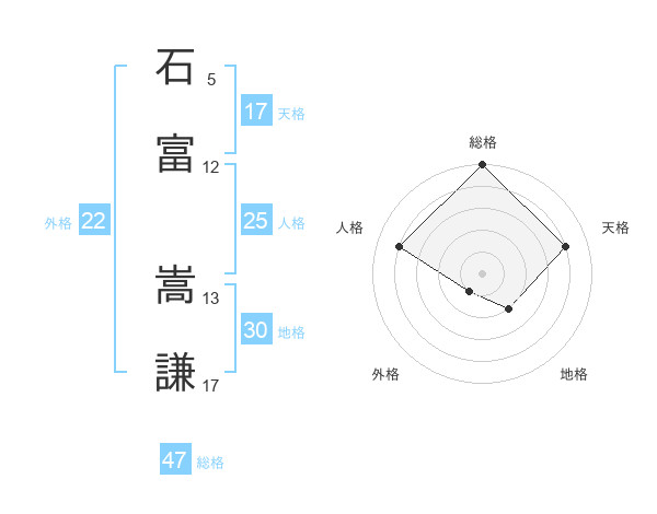 石富 嵩謙さんの総格は47画の5点!