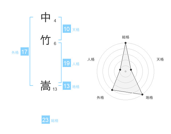 中竹 嵩さんの総格は23画の5点!