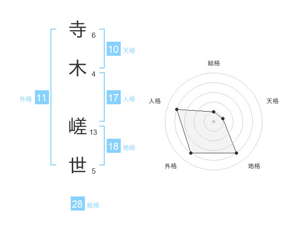 寺木 嵯世さんの人格は17画の4点!