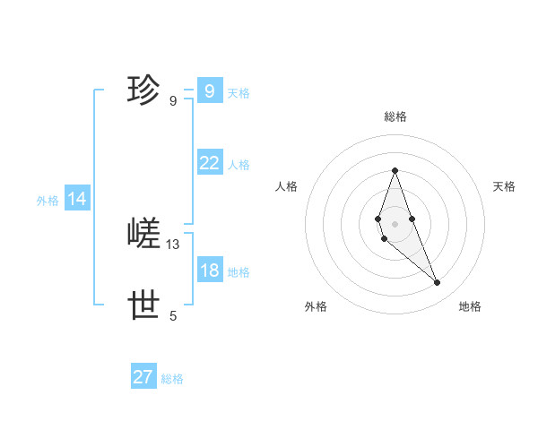 珍 嵯世さんの総格は27画の3点!