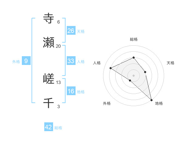 寺瀬 嵯千さんの総格は42画の3点!
