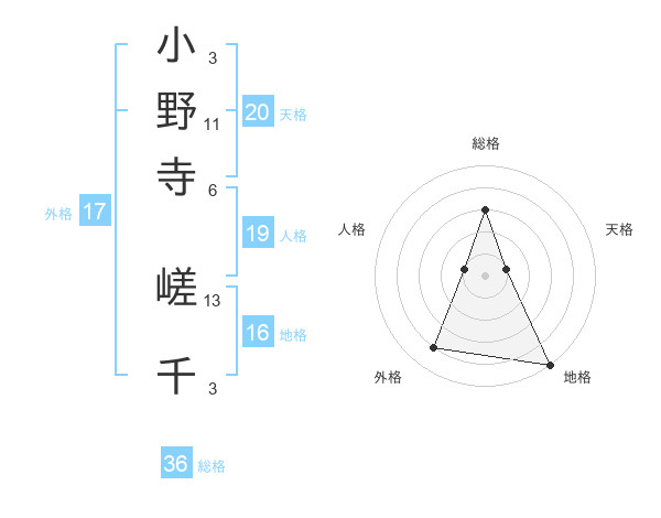 小野寺 嵯千さんを姓名の画数から五運を鑑定