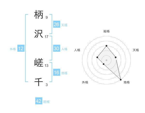 柄沢 嵯千さんの総格は42画の3点!