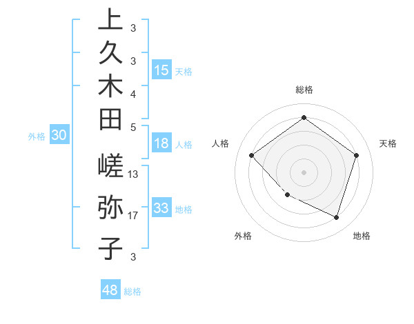 上久木田 嵯弥子さんの天格は15画の4点