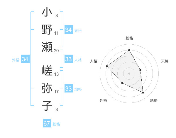 小野瀬 嵯弥子さんを姓名の画数から五運を鑑定