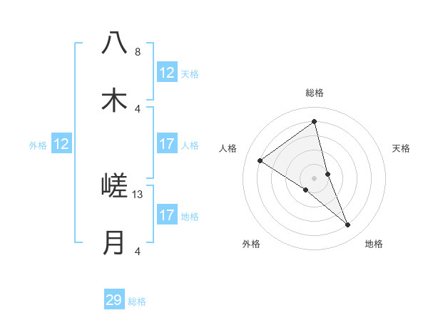 八木 嵯月さんの総格は29画の4点!