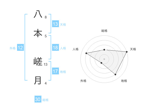 八本 嵯月さんの天格は13画の5点!