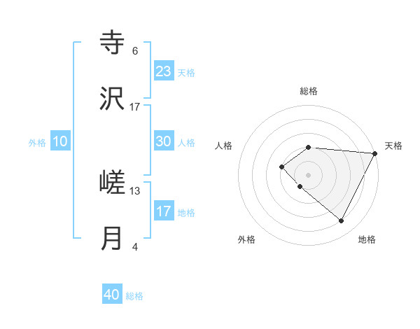 寺沢 嵯月さんを姓名の画数から五運を鑑定