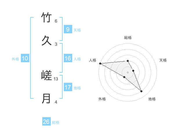 竹久 嵯月さんの総格は26画の2点!