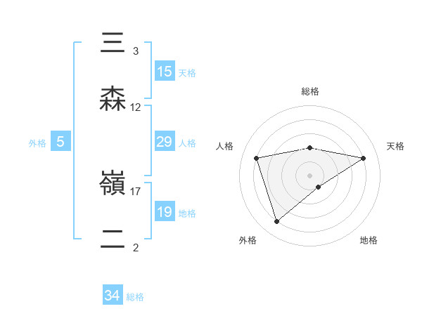 三森 嶺二さんを姓名の画数から五運を鑑定
