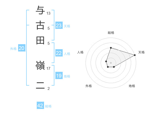 与古田 嶺二さんを姓名の画数から五運を鑑定