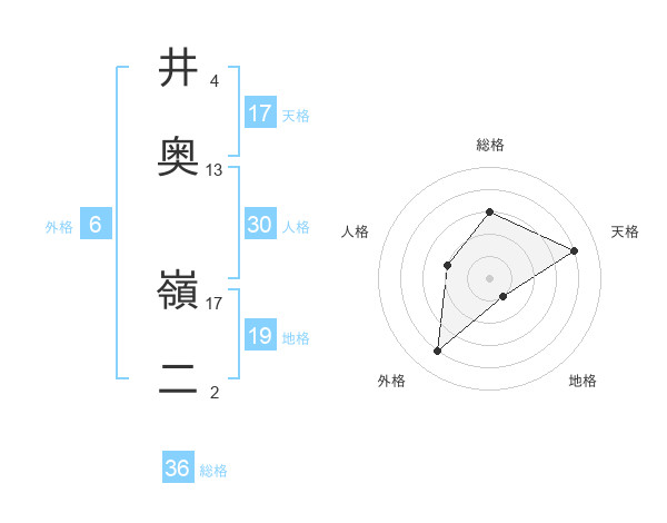 井奥 嶺二さんの天格は17画の4点!
