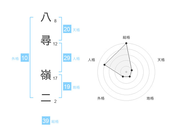 八尋 嶺二さんを姓名の画数から五運を鑑定