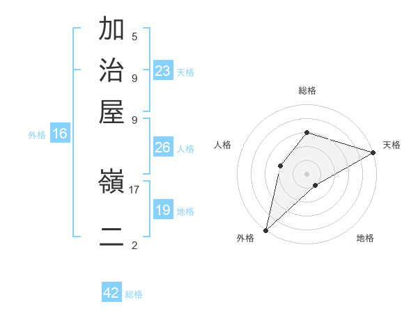 加治屋 嶺二さんの天格は23画の5点