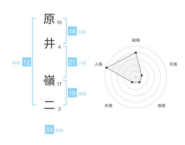 原井 嶺二さんの総格は33画の4点!