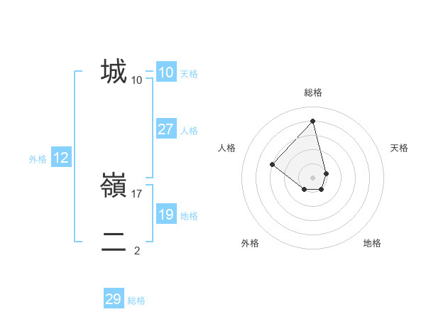 城 嶺二さんの総格は29画の4点!