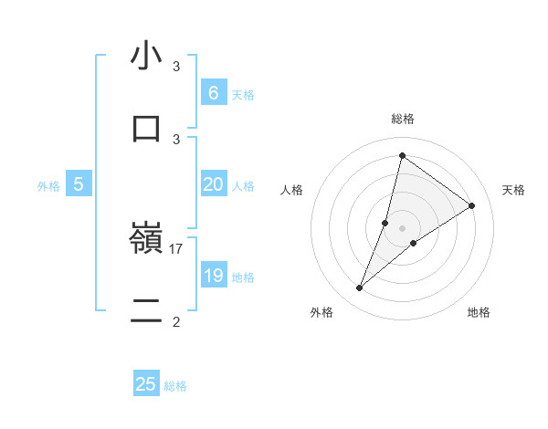 小口 嶺二さんを姓名の画数から五運を鑑定