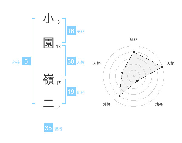 小園 嶺二さんの総格は35画の4点!