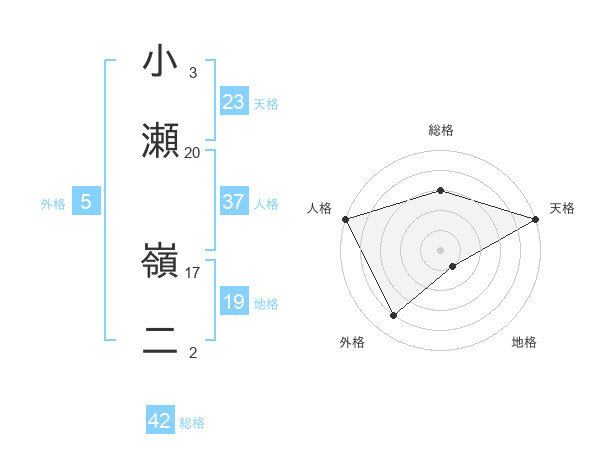 小瀬 嶺二さんの人格は37画の5点!