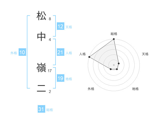 松中 嶺二さんの総格は31画の5点!