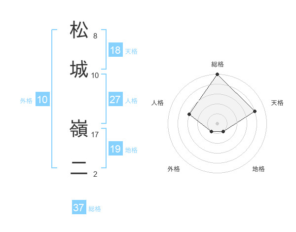 松城 嶺二さんの総格は37画の5点!