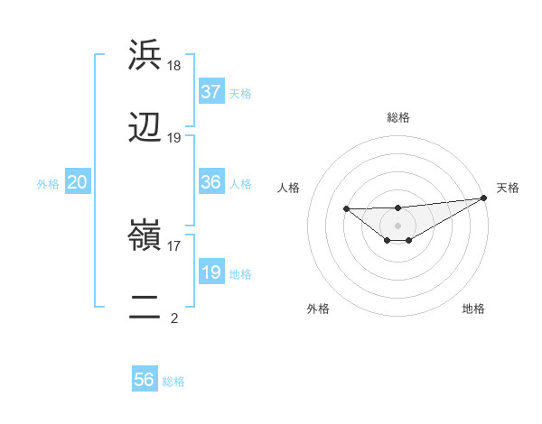 浜辺 嶺二さんの天格は37画の5点!