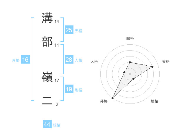 溝部 嶺二さんの天格は25画の4点!