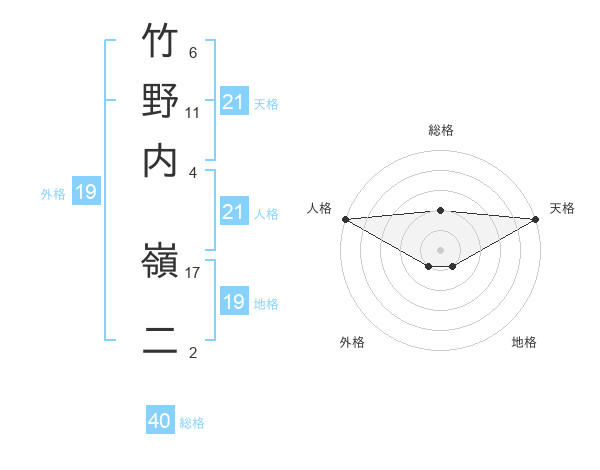 竹野内 嶺二さんの天格は21画の5点!