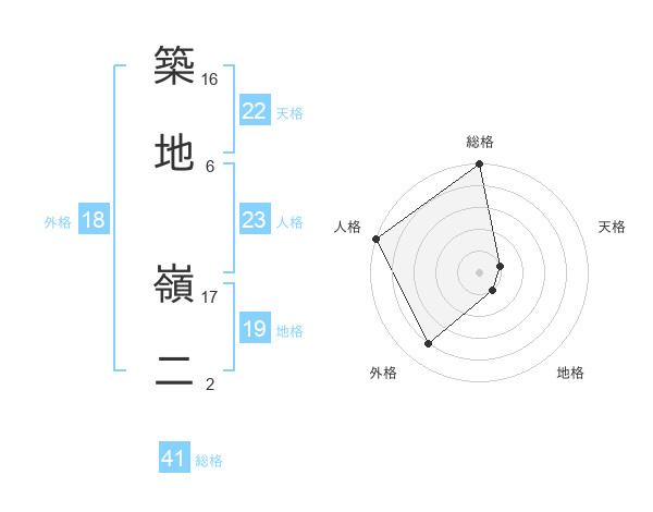 築地 嶺二さんを姓名の画数から五運を鑑定