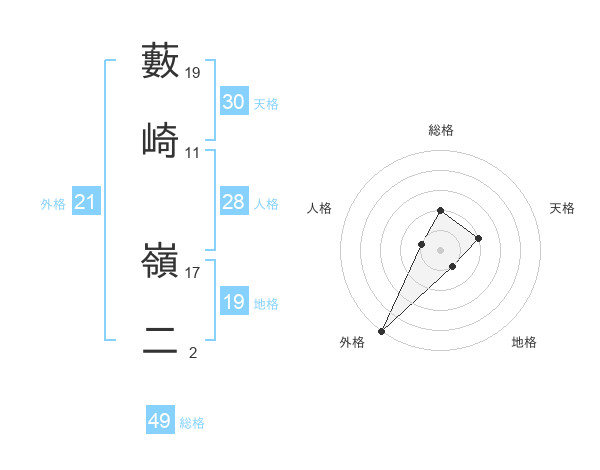 藪崎 嶺二さんの外格は21画の5点!