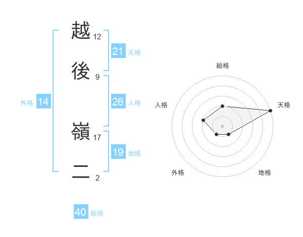 越後 嶺二さんを姓名の画数から五運を鑑定